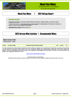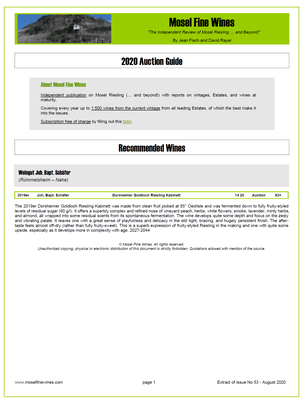 Im Online-Magazin “Mosel Fine Wines", Issue 73 erhält unser diesjähriger VDP.Versteigerungswein eine absolute Bestnote von 94 Punkten!